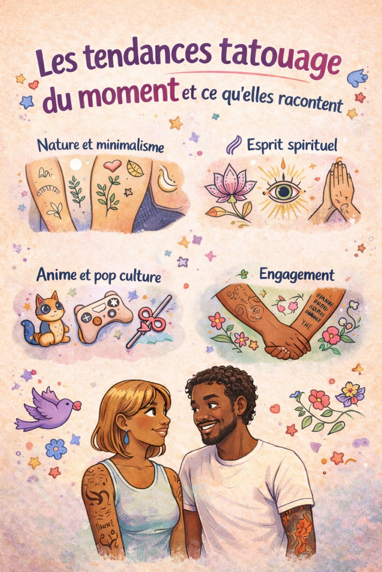 Les tatouages suivent des tendances, mais racontent toujours une histoire personnelle. Découvrons les styles actuels qui séduisent et pourquoi ils touchent autant.