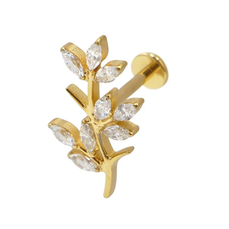 Apportez une touche d’élégance naturelle à votre style avec ce magnifique piercing en forme de branche ornée de cristaux étincelants.